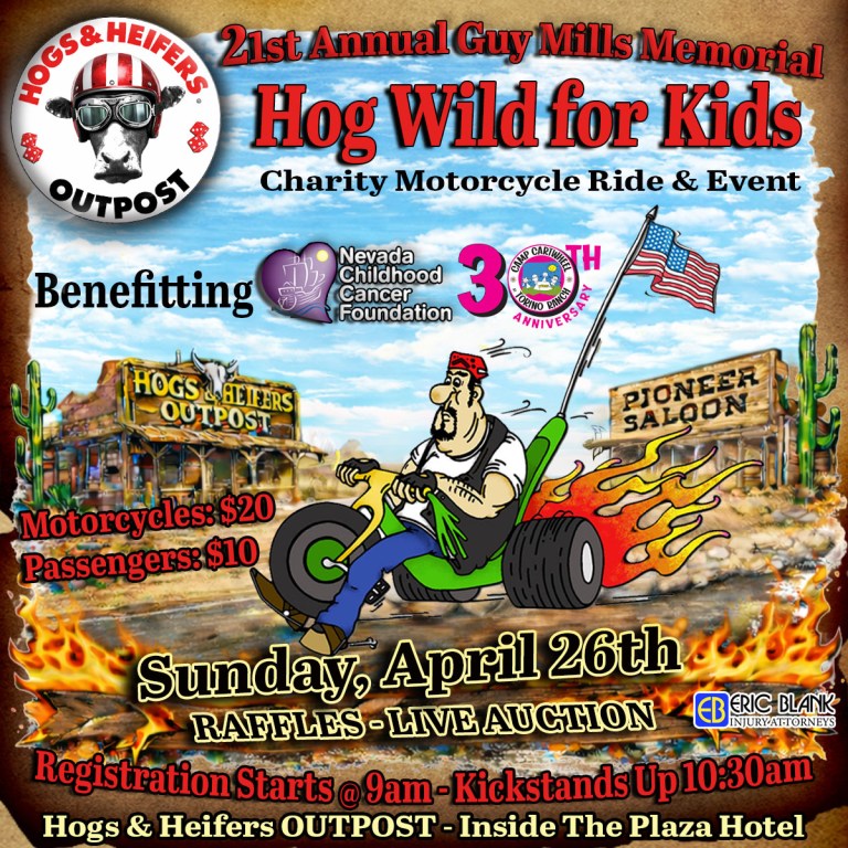 REGISTRATION IS OPEN ~ for Hogs & Heifers Saloon’s “21st Annual Guy Mills Memorial – Hog Wild for Kids Charity Motorcycle Ride & Event”.