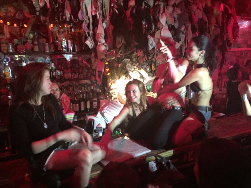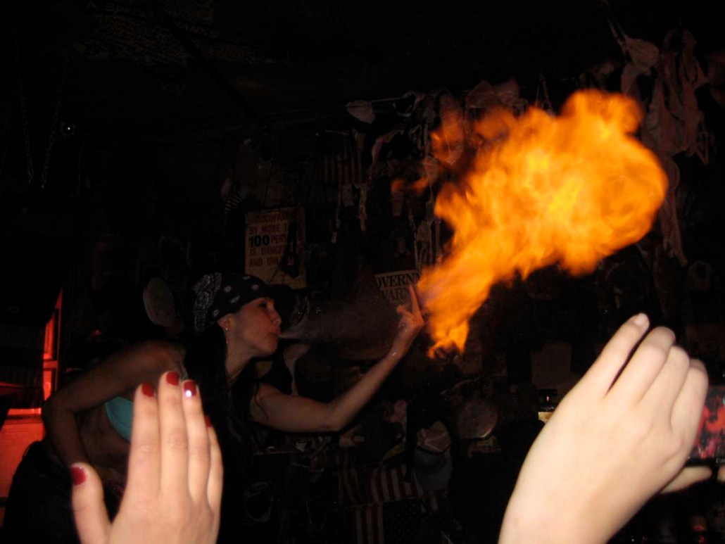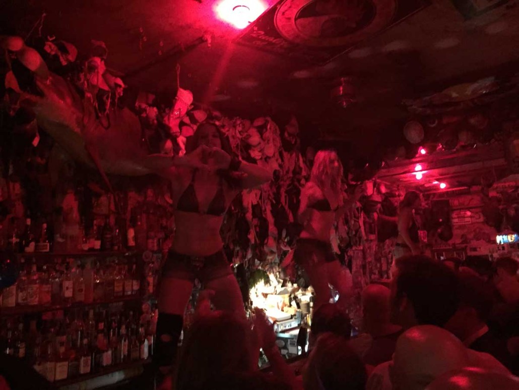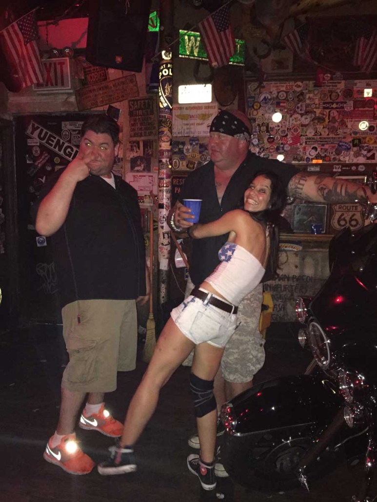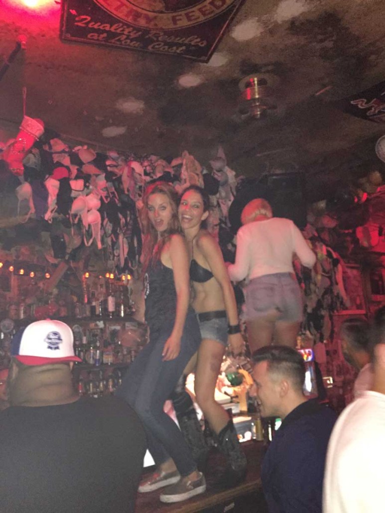 Within ten minutes of walking into Hogs, I had taken a shot, chugged a beer and was happily dancing on top of the bar! When the song ended, the other bartender (Little Michelle – never to be confused with Big Mama!!) jumps up on the bar with us to get the crowd cheering. I start yelling at the crowd as well to see if I can get them riled up.