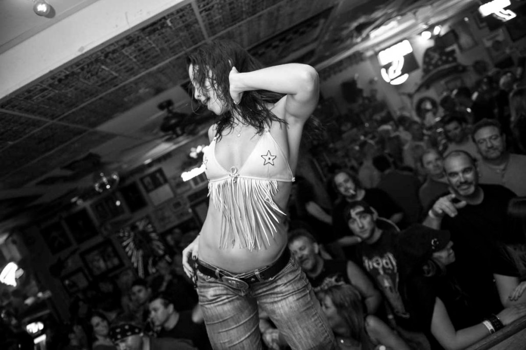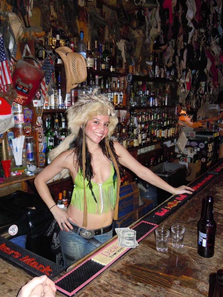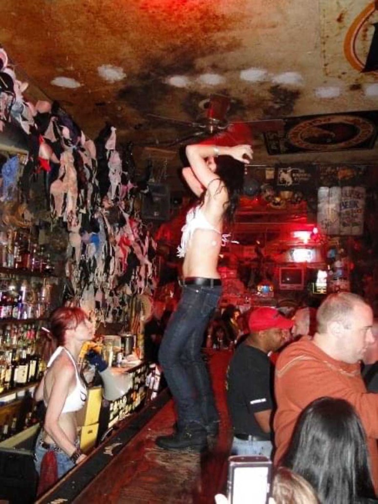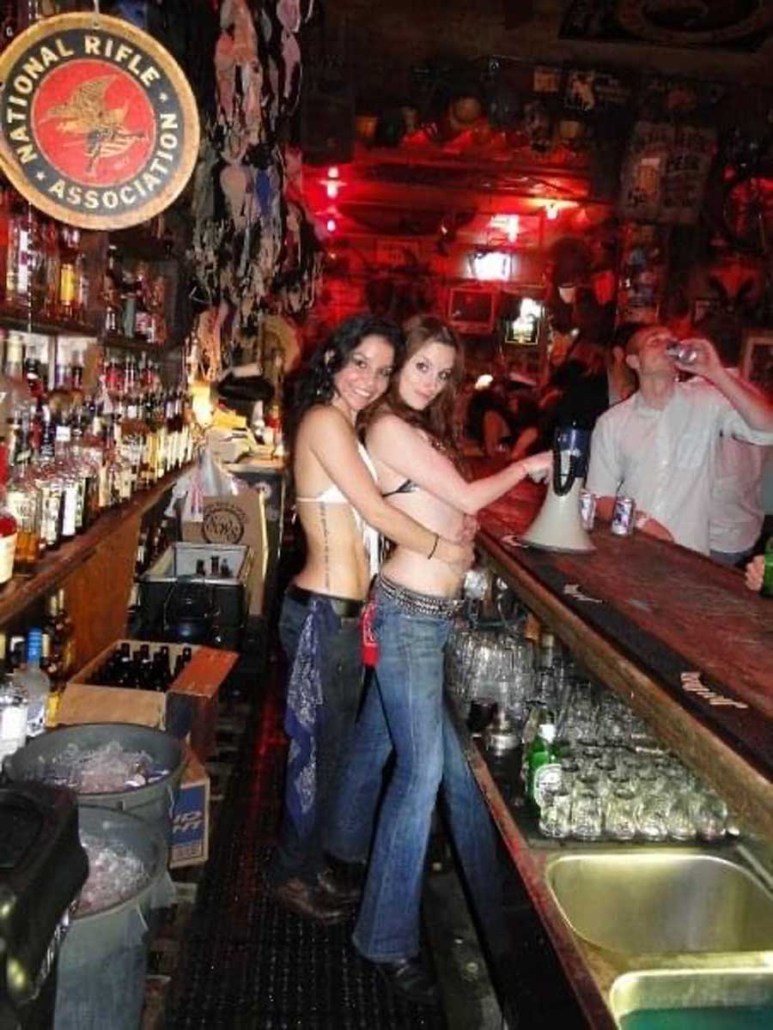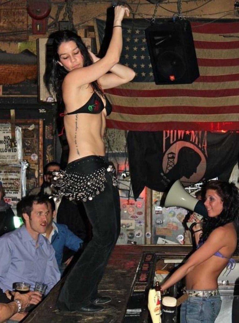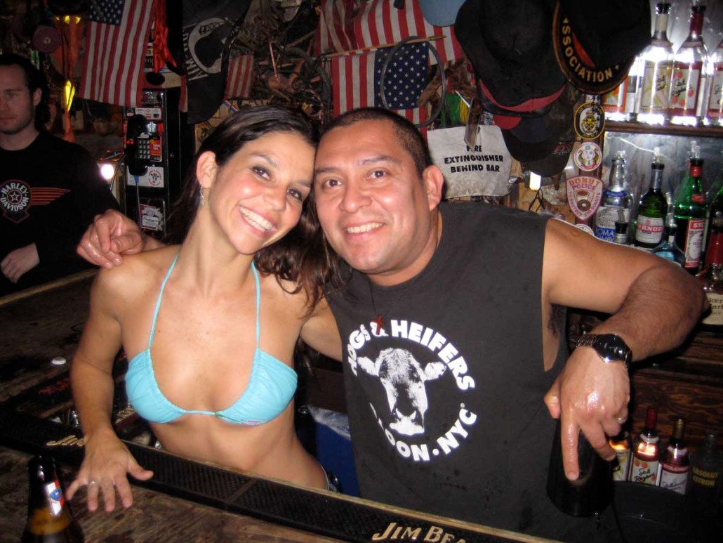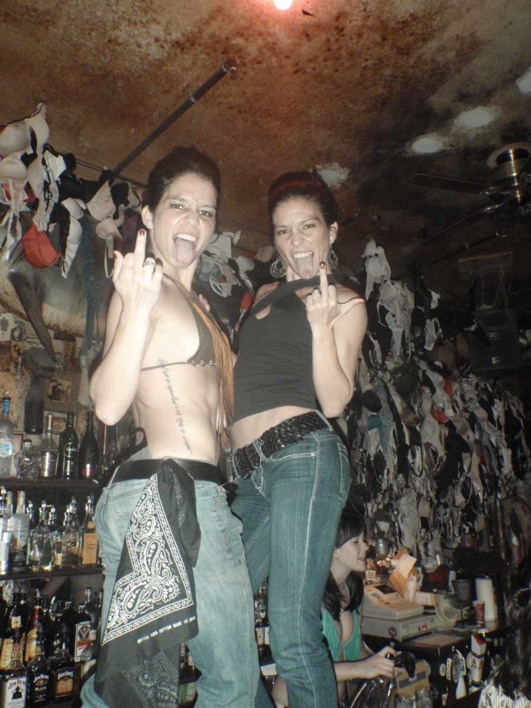 Having entered the picture prior to its opening, Michelle Dell was the first bartender to be hired. The routine performed and style of dress worn by the bartenders behind the bar, which has made Hogs & Heifers famous, was born from Michelle’s heart. Hogs & Heifers opened in November of 1992 during an unseasonably cold winter. There was literally no heat source of any kind in the bar and it was so cold you could often see your own breath. Both Allan and Michelle believed in the notion of less is more when it came to dressing behind the bar and it was always freezing; did we mention the bar had no heat? Finally, Allan bought these little space heaters that did next to nothing to provide heat and with Necessity being the Mother of all Invention, Michelle began dancing on the bar–in the empty bar–as a means to keep warm. She would throw a few dollars in the jukebox and just get up on the bar and dance. Little did she know it would become the trademark theme of Hogs & Heifers and lead to countless celebrities dancing on the bar and donating their bras. The Julia Roberts photo was seen around the world and her bra still hangs there today, albeit hidden beneath some 18,000 bras! Michelle’s famous routine has inspired a Major Motion Picture and a league of copy cat bars.