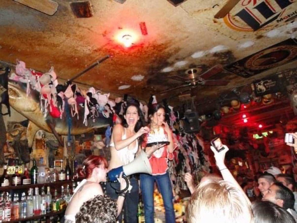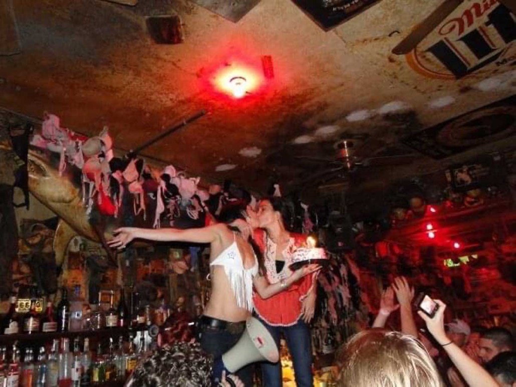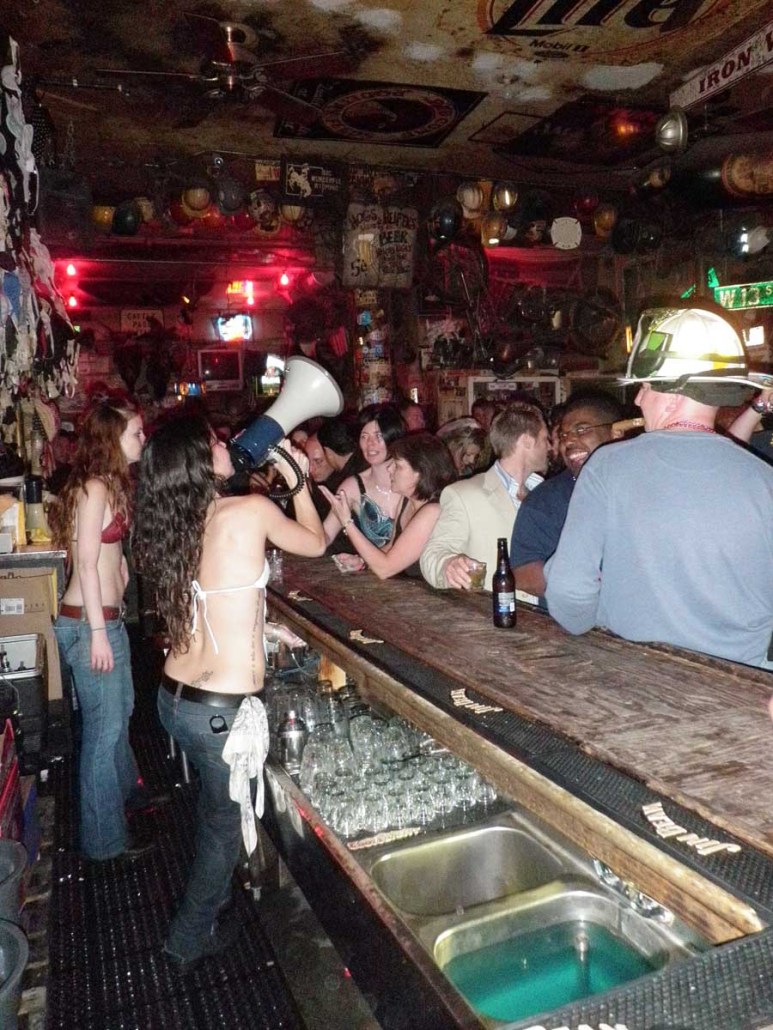 We go to the bar and the sassiest, yet coolest chick I had ever seen is ordering us to get shots with our beers. I wasn’t much of a drinker at the time, so i ask for a Baby Guiness. Looking back, I’m surprised Justine (the cool bartender) didn’t rip me a new one when I proudly told her the shot I wanted. The three of us take our shots, and I hear Justine yell on the megaphone: “I have a bachelorette party here, who wants to see them dance on the bar?”