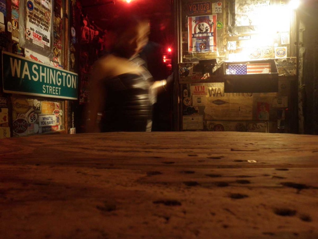 Back in those days, the meatpacking district still was exactly as the name describes it: a neighborhood full of meat packers… with a couple of night clubs, a handful of restaurants and lots of bikers. We walked up to a corner, and there’s a line wrapped around it with all kinds of people waiting to get in. When we finally get to the door, we are greeted by a bouncer. I had never seen a man that big. It was none other than Big Joe. When he saw the veils, he lit up and said: “Another one bites the dust, hey?” He laughed and opened the door. When that door opened, it felt like I was stepping into a different world. The music was loud, the bartenders were screaming, the crowd was wild.