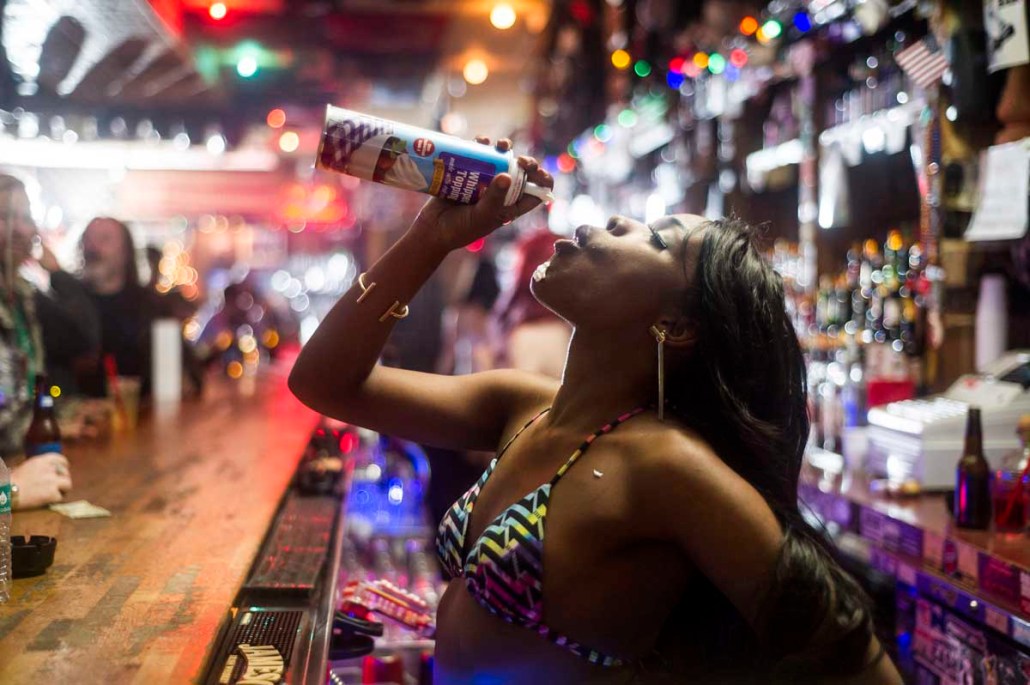 I walked up and took a seat in what I would later learn was known as “The Dirty Old Man Corner”. The bartender Ashlee asked me for my drink order. A shot of Jameson, no chaser. After knocking it back I ordered another without hesitation. Ashlee looked impressed. A few moments later I found myself dancing on the bar. When I got down, she said, “You shoot whiskey, you’re cute as fuck, and you can shake your ass. You want a job here?”
