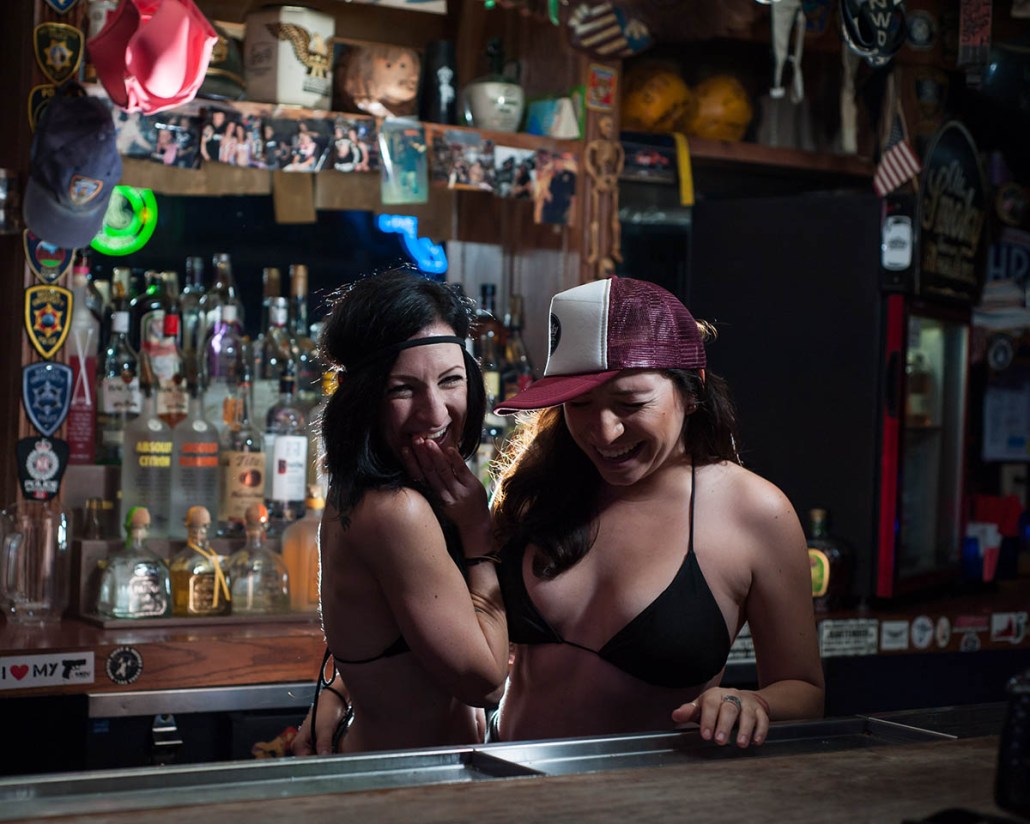 Having entered the picture prior to its opening, Michelle Dell was the first bartender to be hired. The routine performed and style of dress worn by the bartenders behind the bar, which has made Hogs & Heifers famous, was born from Michelle’s heart. Hogs & Heifers opened in November of 1992 during an unseasonably cold winter. There was literally no heat source of any kind in the bar and it was so cold you could often see your own breath. Both Allan and Michelle believed in the notion of less is more when it came to dressing behind the bar and it was always freezing; did we mention the bar had no heat? Finally, Allan bought these little space heaters that did next to nothing to provide heat and with Necessity being the Mother of all Invention, Michelle began dancing on the bar–in the empty bar–as a means to keep warm. She would throw a few dollars in the jukebox and just get up on the bar and dance. Little did she know it would become the trademark theme of Hogs & Heifers and lead to countless celebrities dancing on the bar and donating their bras. The Julia Roberts photo was seen around the world and her bra still hangs there today, albeit hidden beneath some 18,000 bras! Michelle’s famous routine has inspired a Major Motion Picture and a league of copy cat Bars.