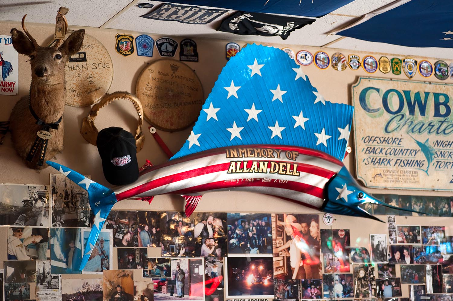 The idea for opening a bar and calling it Hogs & Heifers was conceived in, of all places, a bar. Allan Dell was a self-proclaimed functioning alcoholic and figured he spent enough time sitting at a bar and that he might as well make some money while he sat there. Allan’s two friends and drinking buddies were a Master Carpenter and a Graphic Design Artist and he talked them into helping him build a bar. They would all drink for free and get laid regularly and for three broke guys in their early to mid twenties, who could ask for anything more. Allan’s father agreed to finance his project if he could find an experienced bar owner to “father” him in the business. Enter Tom McNeil, legend in the Dive Bar business. McNeil owned the Village Idiot in Manhattan’s East Side, which was the Boys’ favorite watering hole, where they could sit for hours drinking ice cold Pabst Blue Ribbon for a $1.75 a can. Allan knew that he wanted to open a bar that had to do with motorcycles and women and the original logo did, in fact, include an illustration of a chopper. The Boys were trying to come up with a name, while sitting in the Village Idiot one afternoon…”Hogs & something”. On the wall above the bar was a sign for a Heifer Auction, and a heifer being a cow that has not yet been bred, is essentially a virgin cow. The name Hogs & Heifers was born. The fact that the bar ended up being in a real meat market was simply due to the affordable rent at the time, but it was a perfect match and had a great deal to do with the success of the business. Hogs & Heifers Saloon was to be an all American classic country and southern rock-n-roll dive bar. Allan knew he wanted it to have the look and feel of a gin mill and that he wanted to hang “stuff” all over the walls. Other than that, there was little else that he had thought about. He had a lot of friends who liked to drink and planned on throwing a party for them every night. Allan may never have imagined that it would turn into the famous bar it is today, but it was absolutely his pride and joy and he considered it his greatest achievement and reveled in its quick success. Having entered the picture prior to its opening, Michelle Dell was the first bartender to be hired. The routine performed and style of dress worn by the bartenders behind the bar, which has made Hogs & Heifers famous, was born from Michelle’s heart. Hogs & Heifers opened in November of 1992 during an unseasonably cold winter. There was literally no heat source of any kind in the bar and it was so cold you could often see your own breath. Both Allan and Michelle believed in the notion of less is more when it came to dressing behind the bar and it was always freezing; did we mention the bar had no heat? Finally, Allan bought these little space heaters that did next to nothing to provide heat and with Necessity being the Mother of all Invention, Michelle began dancing on the bar–in the empty bar–as a means to keep warm. She would throw a few dollars in the jukebox and just get up on the bar and dance. Little did she know it would become the trademark theme of Hogs & Heifers and lead to countless celebrities dancing on the bar and donating their bras. The Julia Roberts photo was seen around the world and her bra still hangs there today, albeit hidden beneath some 18,000 bras! Michelle’s famous routine has inspired a Major Motion Picture and a league of copy cat Bars. Essentially, Allan and Michelle, and their friends, were just a bunch of kids with nothing to lose and they threw a party that they enjoyed. They were fortunate and blessed that so many others would love to come to their party and would do so repeatedly. The two were married in Reno, Nevada, on November 16th, 1993. Allan Dell passed away on June 7, 1997. Hogs & Heifers continues to be run by Michelle Dell who was the sole proprietor of the New York City location. She now lives in Las Vegas, close to her favorite saloon!