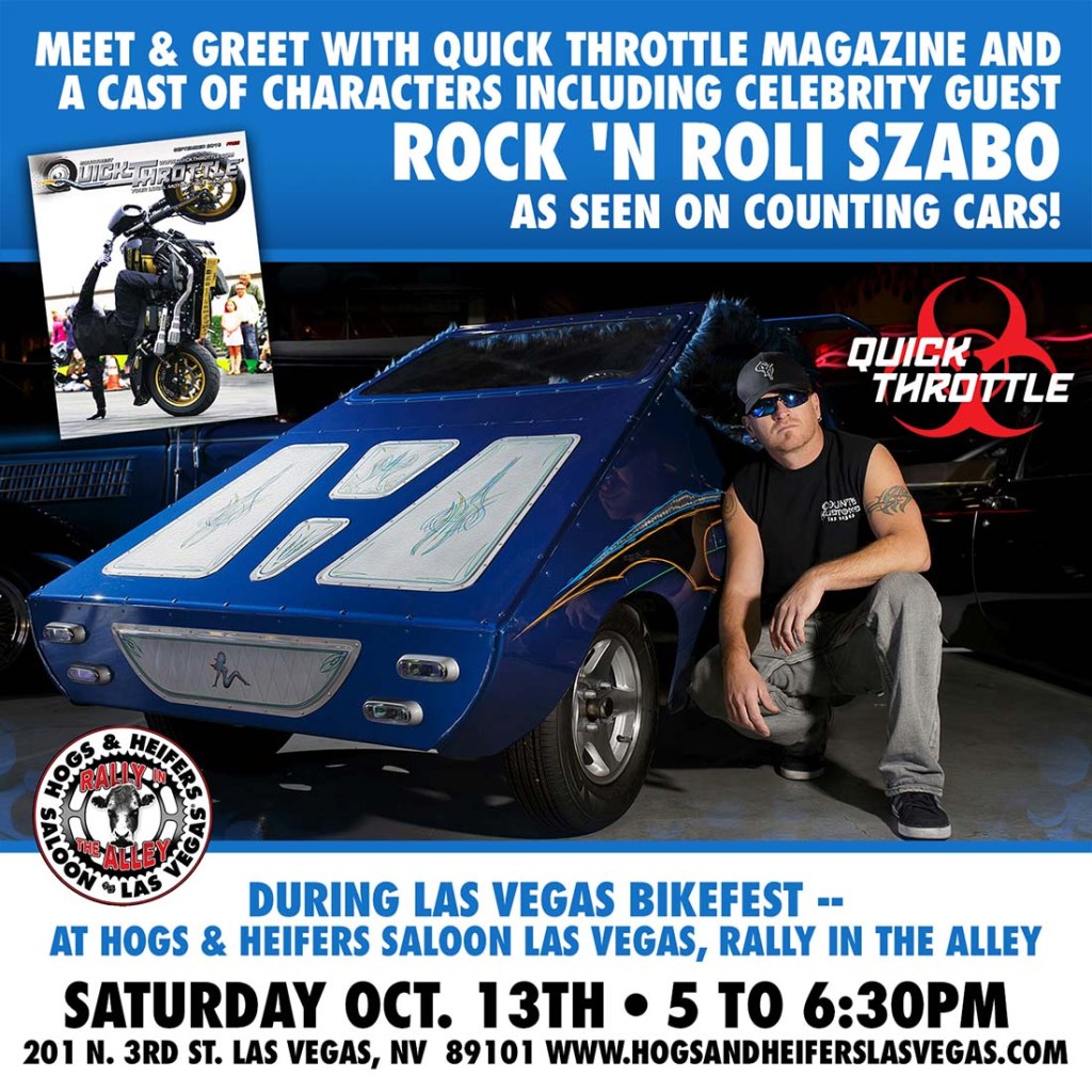 Meet and greet with Quick Throttle Magazine and a cast of characters including celebrity guest Rock ‘N Roli Szabo seen on Counting Cars!