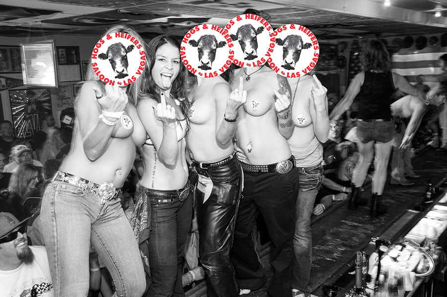 Did you know that if you Google “Show me your nipples”, one of our older blogs from the Laughlin Rally days shows up on the second page… That’s a proud accomplishment for a small, non-corporate dive bar! We’re probably one of the most famous places in the world where females can dance on a bar, and show just about everything they want. Oddly no nipples allowed, one may slip out every now and then… We do keep some Hogs stickers handy to cover thy nipple. Sooo, if you’re feeling frisky while the Adult Entertainment Expo is in town, come whip out those titties while dancin’ on the bar. Our ladies we’ll be happy to sticker you up 😉