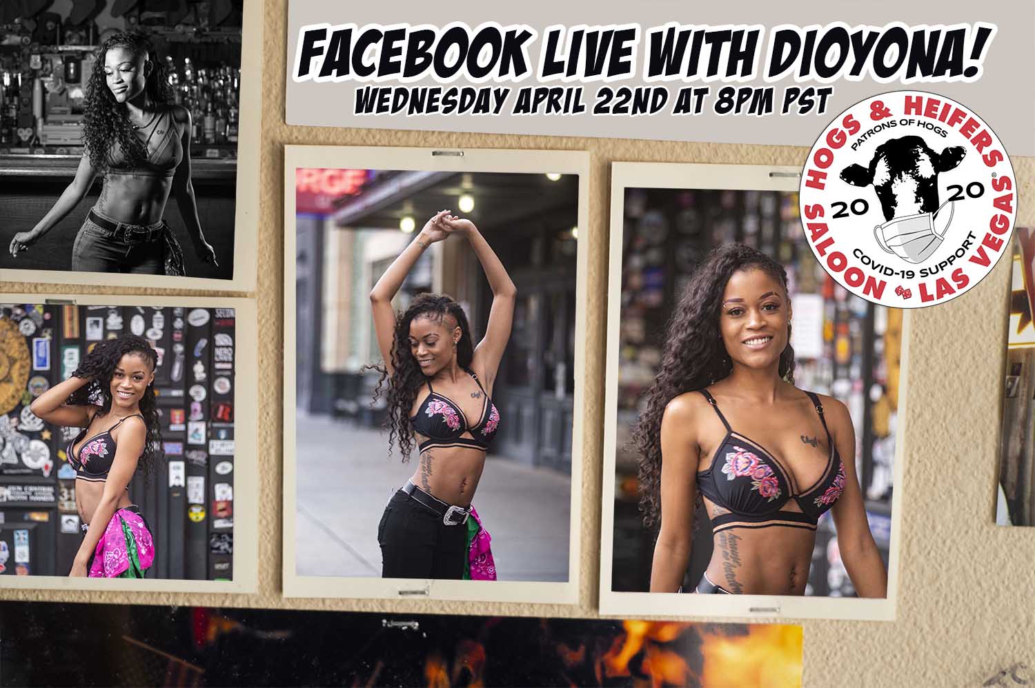 Even though our doors our temporarily closed, we’ve been partying pretty hard in Hogs world. Our Facebook Live series continues Wednesday April 22nd at 8pm with Dioyona 😉