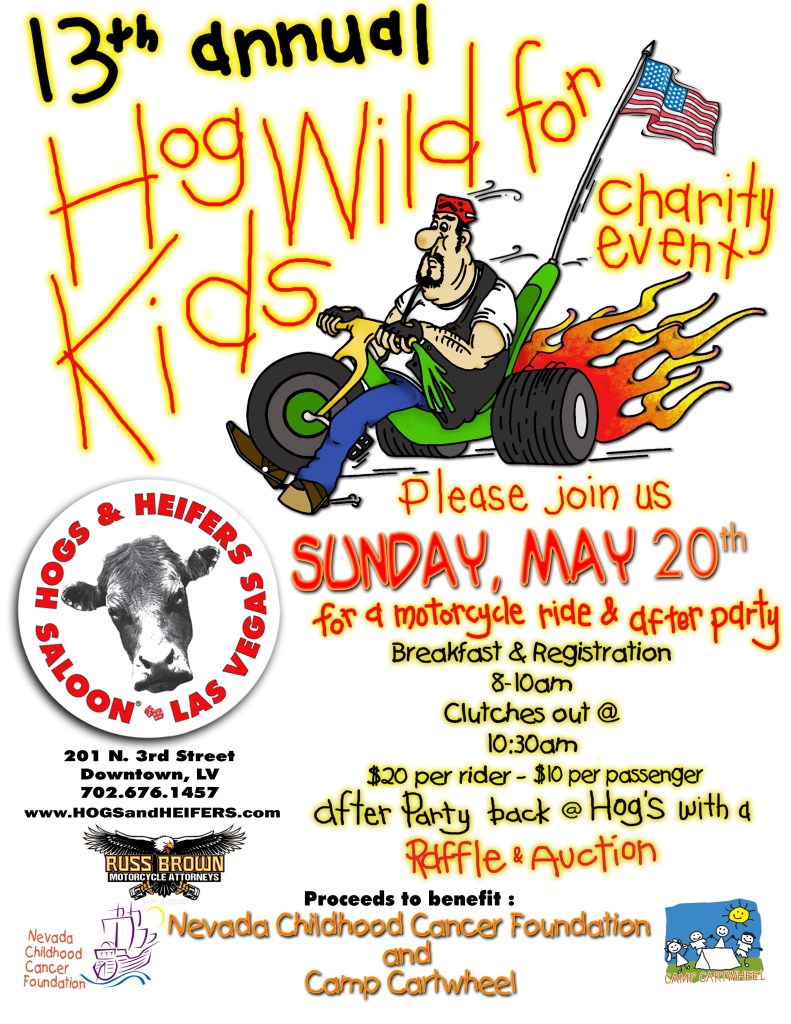 We do this event every year, it’s easily one of the best annual motorcycle rides in town! Please join us for the 13th Annual Hog Wild for Kids charity event. Doors open at Hogs at 8am. Kickstands up at 10:30!